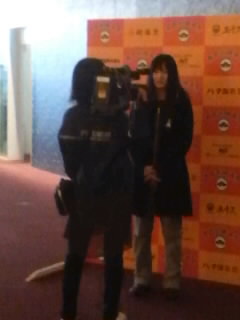 17時21分 授賞式終了後、取材陣に取り囲まれる澁谷監督。テレビ松本のインタビューを受けています。